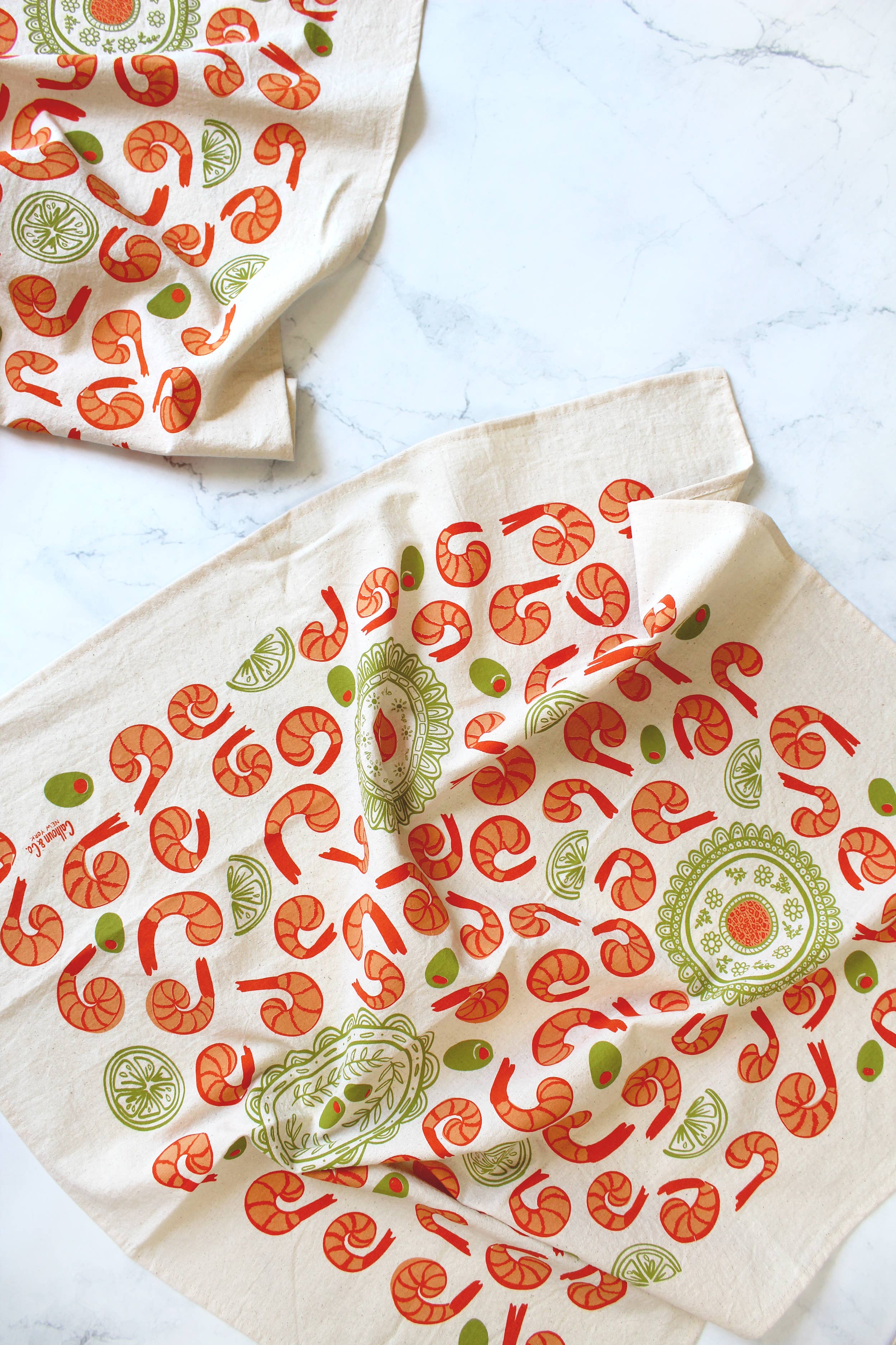 $20.00$20.00/Shrimp Cocktail - now it's a party. Shrimps, Olives, Lemons and doilies. 100% cotton tea towel. Oversized Tea Towel is Aprox 28” X 28” screen printed...