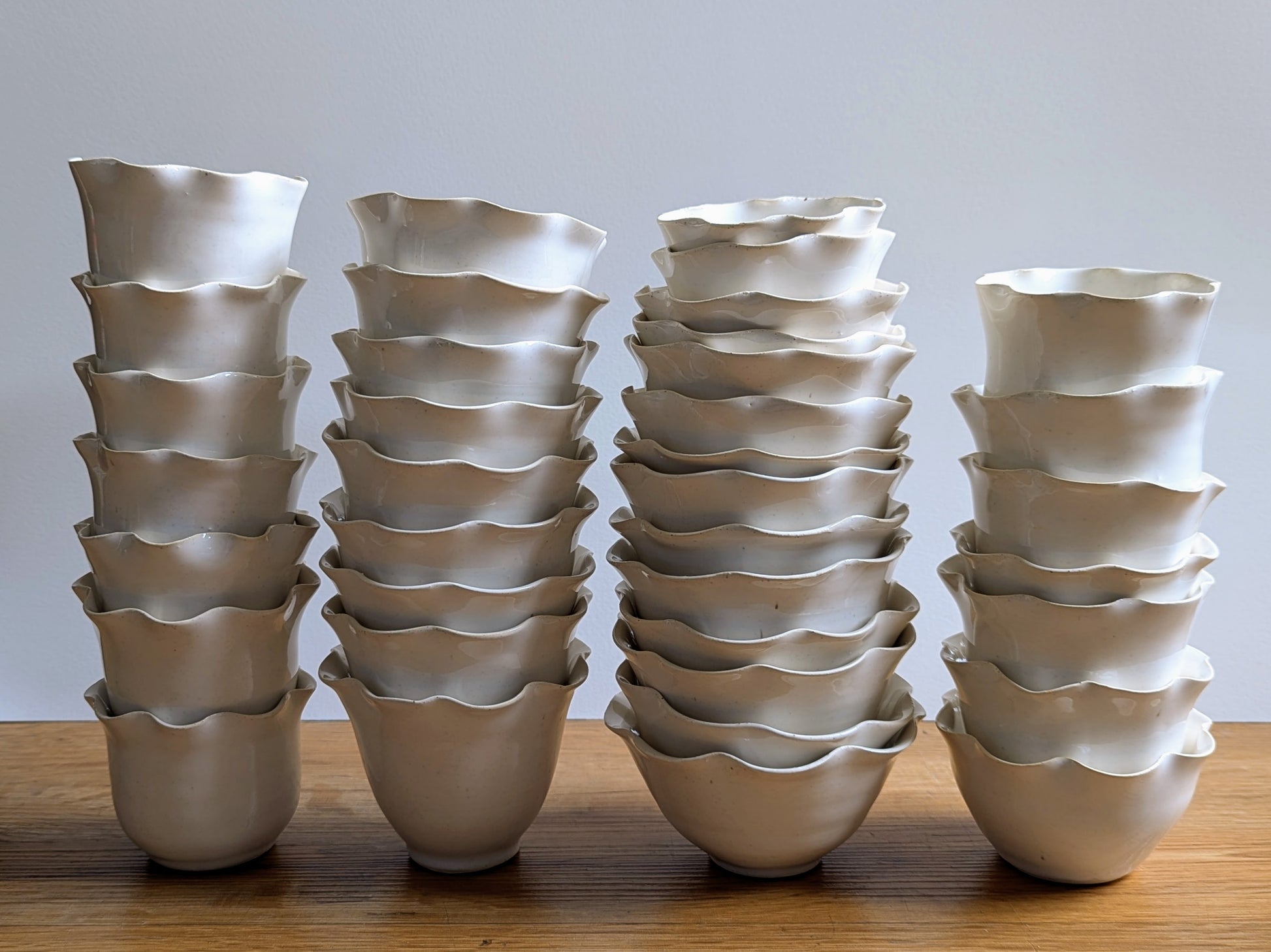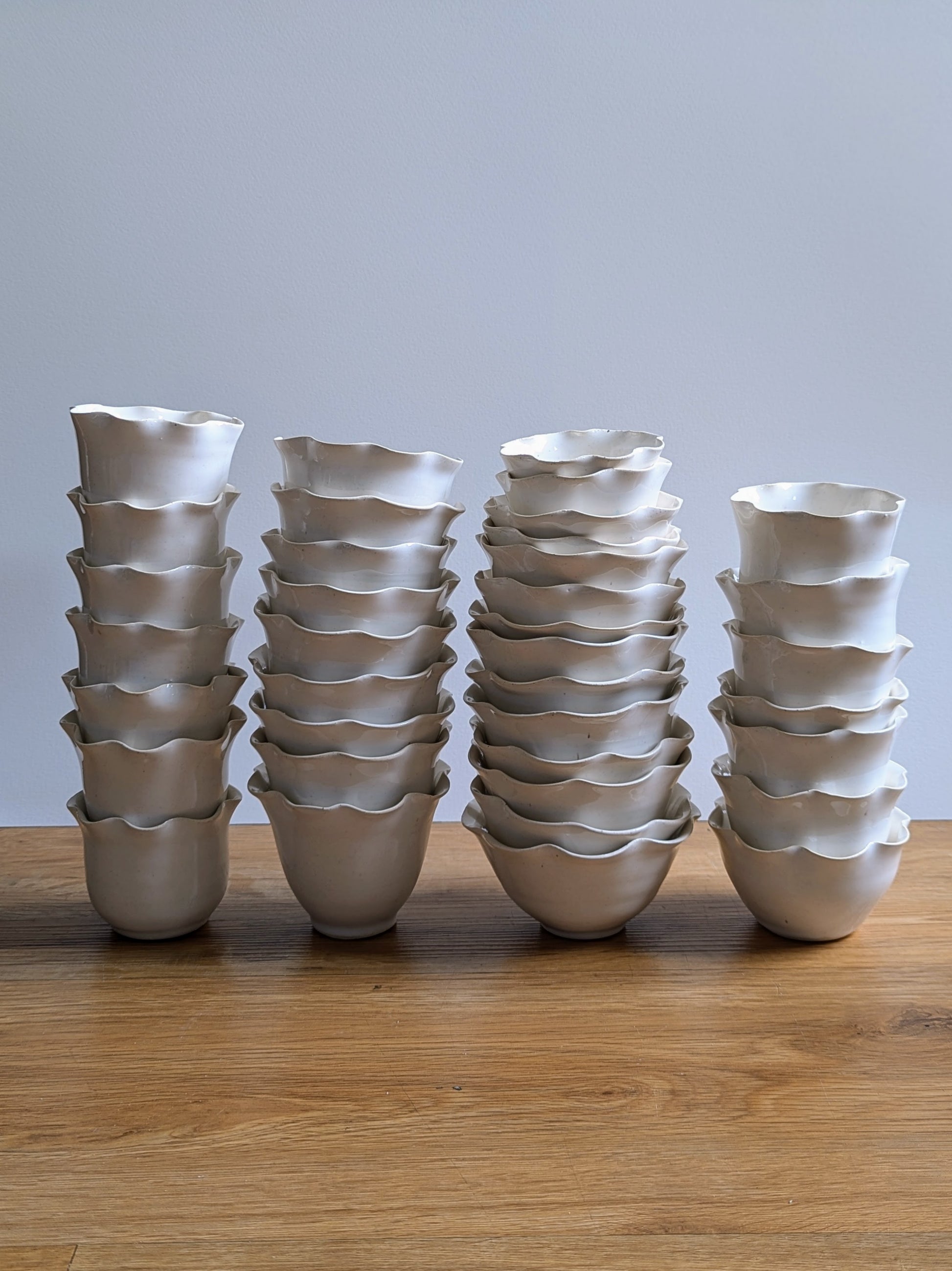 With a background in ceramics and sculpture, Crowley’s approach is rooted in craftsmanship and material exploration. Her handcrafted mugs, with quirky little legs and creature-like details, transform everyday objects into small works of art that are often functional, but full of personality.