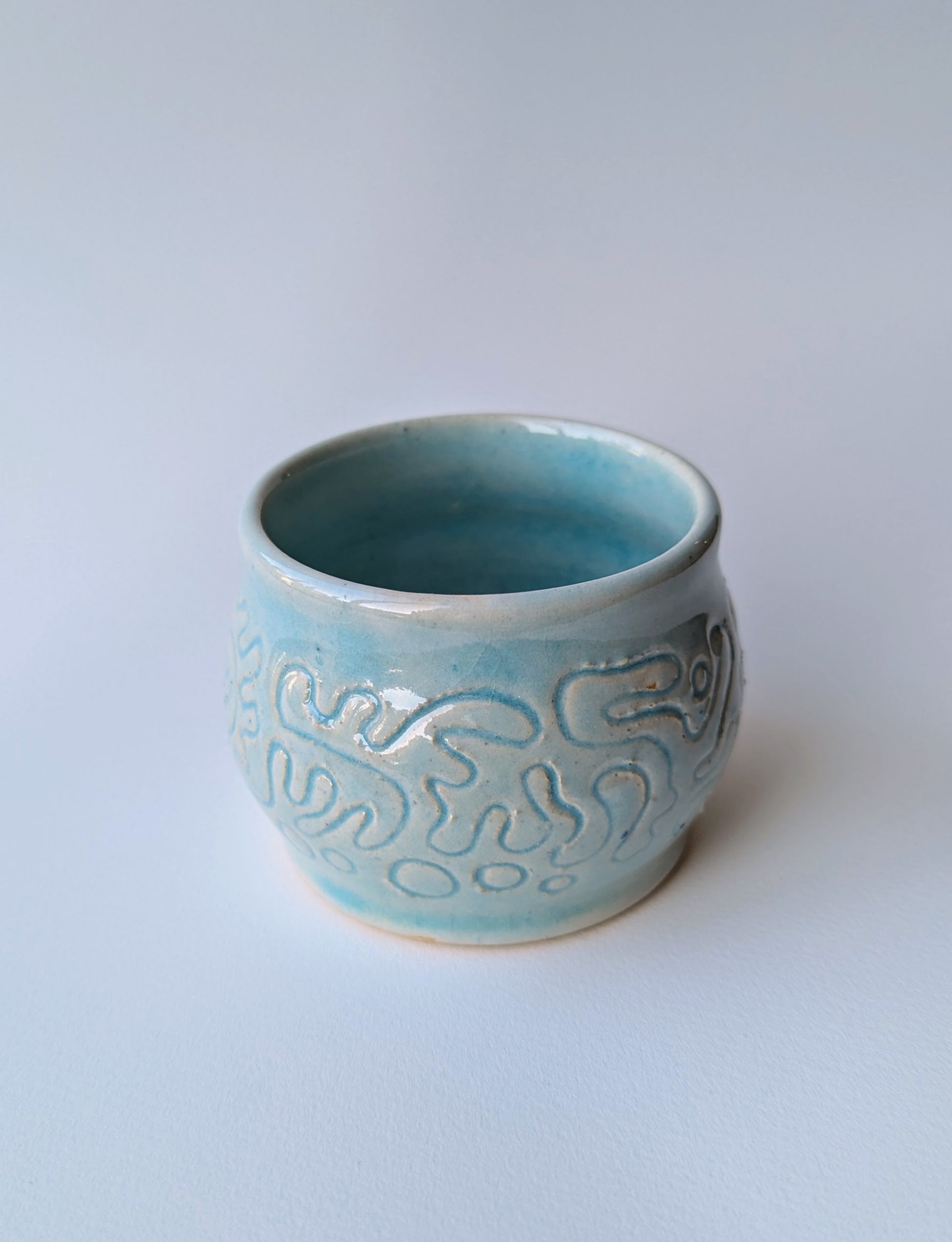 With a background in ceramics and sculpture, Crowley’s approach is rooted in craftsmanship and material exploration. Her handcrafted mugs, with quirky little legs and creature-like details, transform everyday objects into small works of art that are often functional, but full of personality.