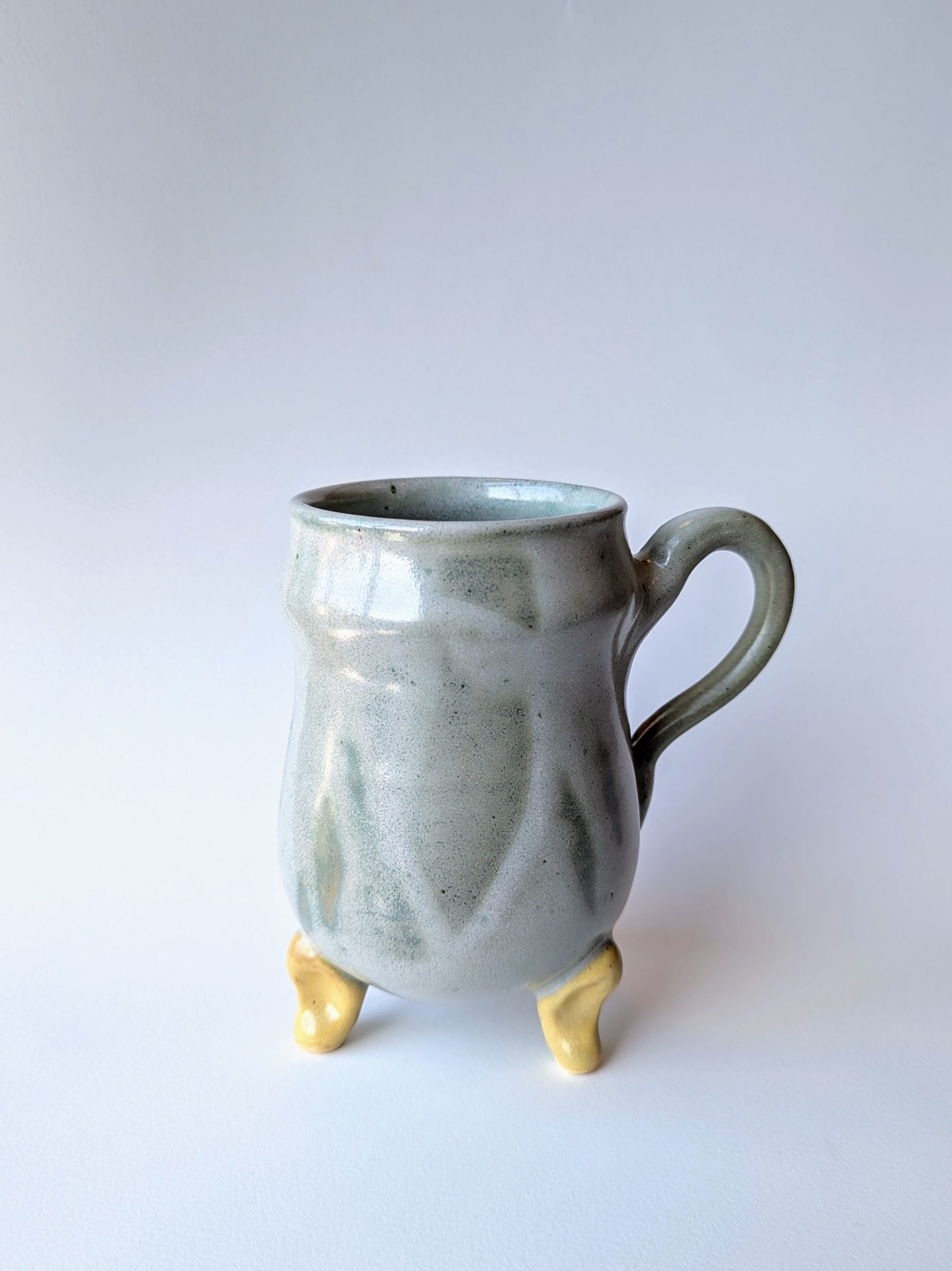 With a background in ceramics and sculpture, Crowley’s approach is rooted in craftsmanship and material exploration. Her handcrafted mugs, with quirky little legs and creature-like details, transform everyday objects into small works of art that are often functional, but full of personality.