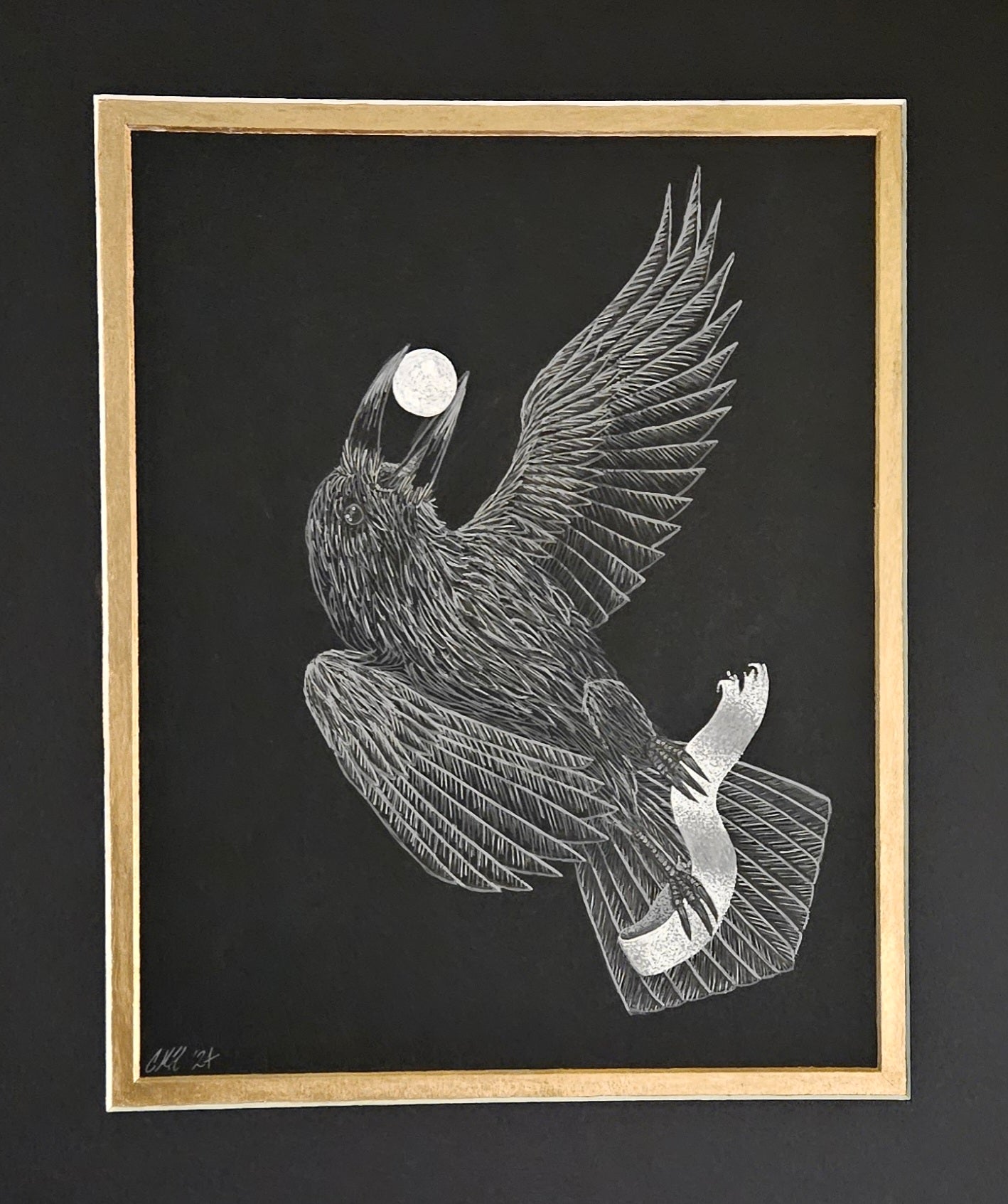 This fine art print is a reproduction of Christa Darshea’s reverse-process drawing, originally created in white ink/pencil on black paper. Each print preserves the luminous effect of light drawn out of darkness, highlighting her intricate detail and mystical themes.