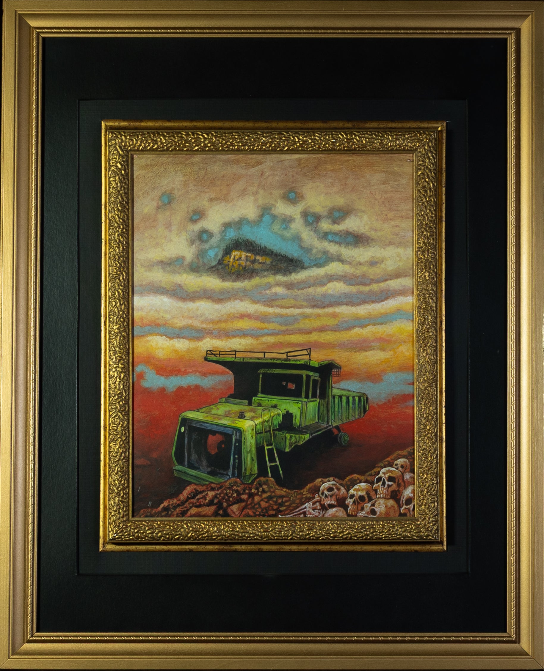 James Powers is a painter and woodworker from McDowell County, West Virginia. He builds his surfaces from salvaged canvas, plywood, masonite, and reclaimed wood. His work combines Appalachian folklore, cryptid stories, coal field history, and 80s and 90s pop culture. Themes of good and evil, environmental change, and the spirits moving through the mountains appear throughout his practice. James graduated from Columbia College in West Virginia with a degree in illustration and hand builds every frame.